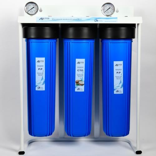 يصلح للفلل والمزارع وسكن العمال والمصانع يتكون من ثلاث مراحل الأولى تقوم بإزالة الصدأ والاتربه والشوائب التي تقل دقتها عن ٥ ميكرون الثانيه تقوم بإزالة المواد الكيميائية من المياه مثل الكلور الثالثة تقوم بإزالة المواد العضوية والبكتيريا القدرة الإنتاجية : ٢٠ الف جالون لكل عملية تبديل